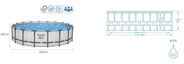 Басейн Bestway 561FM каркасний круглий , розмір Ø 610 см x 132 см, місткість (об'єм) 33240 л. заповнено водою на 90%.
