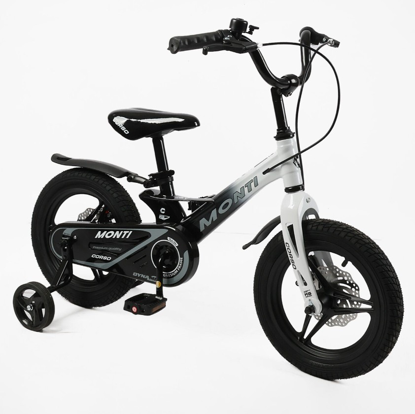 Дитячий двоколісний магнієвий велосипед Corso Monti з литими магнієвими дисками 14-ти дюймових коліс- суперлегкий і безпечний. Зручне керування, дискові гальма, якісна конструкція і всі комплектуючі. Ексклюзивний дизайн тм Corso має стильне матове і глянцеве фарбування.